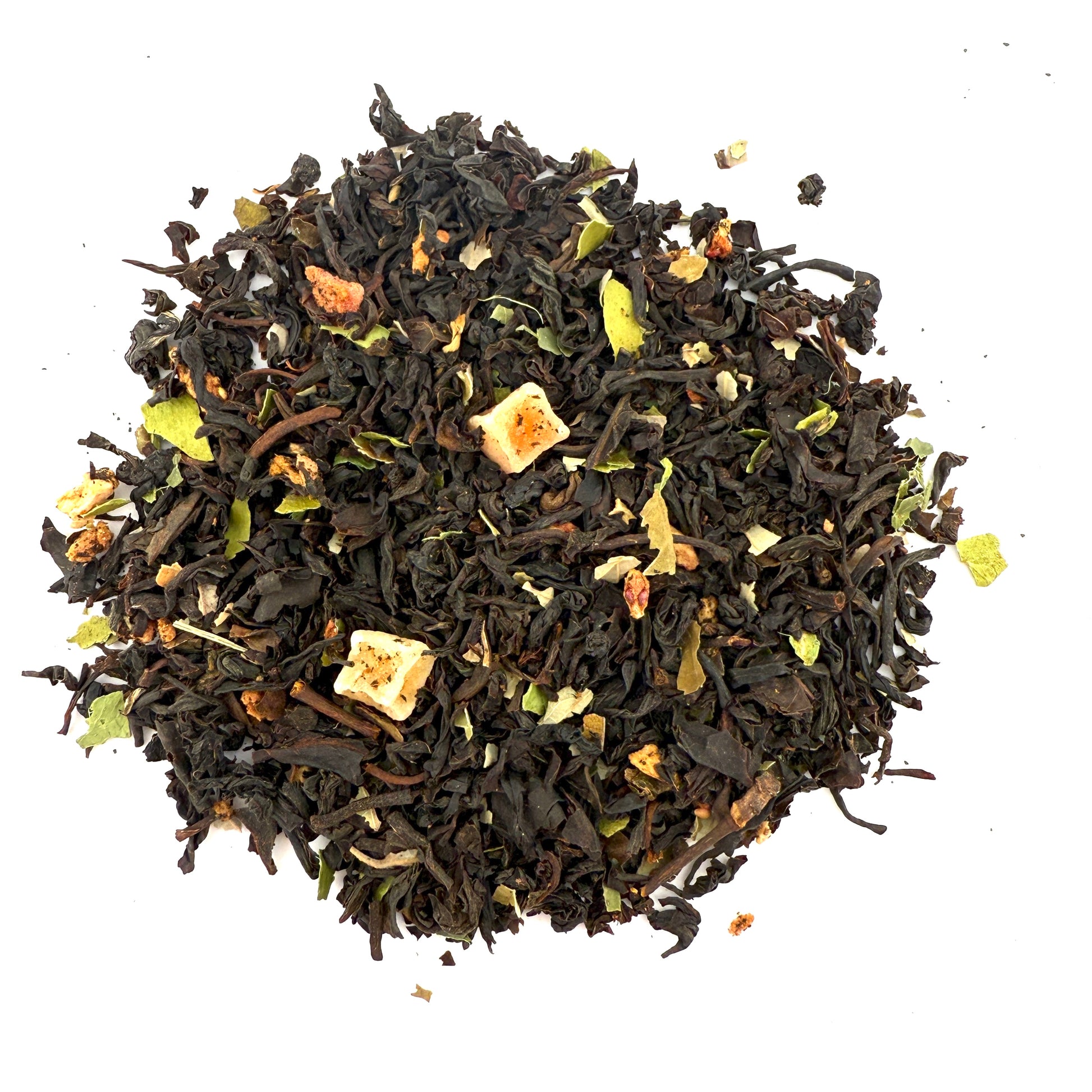 Ingredients: Black tea, papaya pieces, strawberry pieces, lime leaves, blackberry leaves, natural flavors (organic compliant).