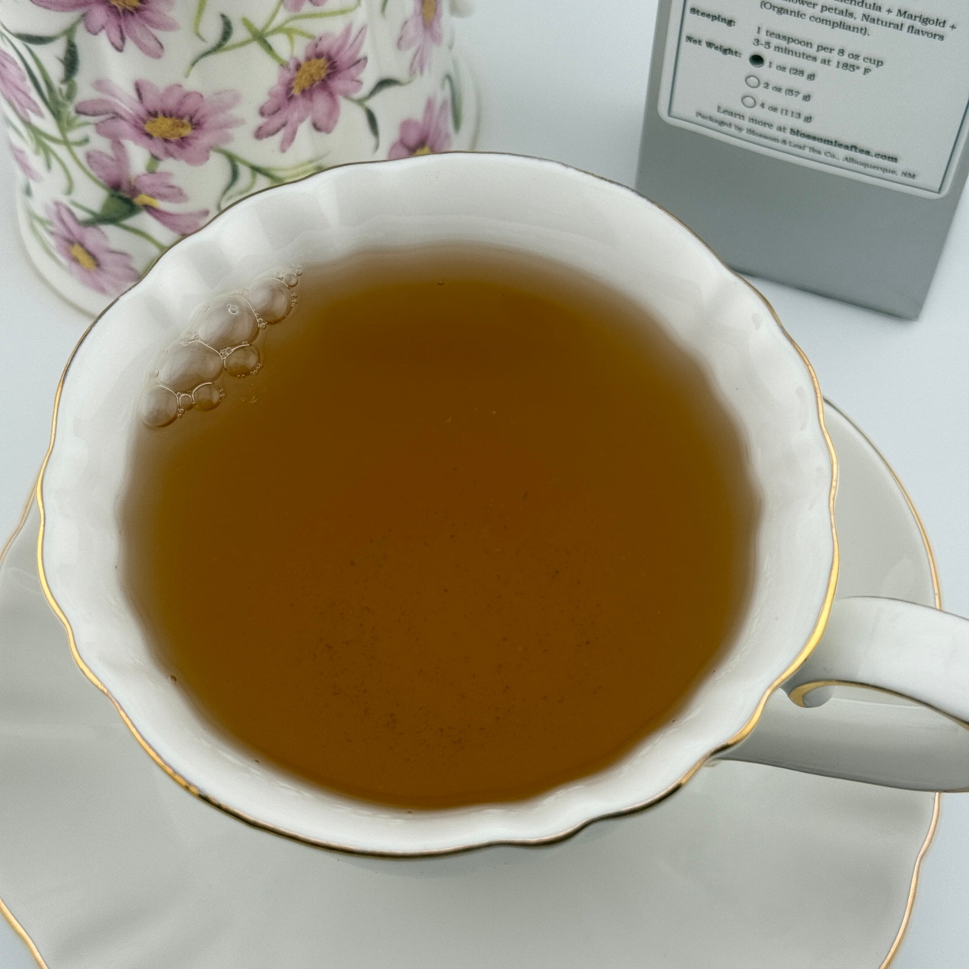 Ingredients: Green tea, calendula petals, marigold petals, sunflower petals, natural flavors (organic compliant).